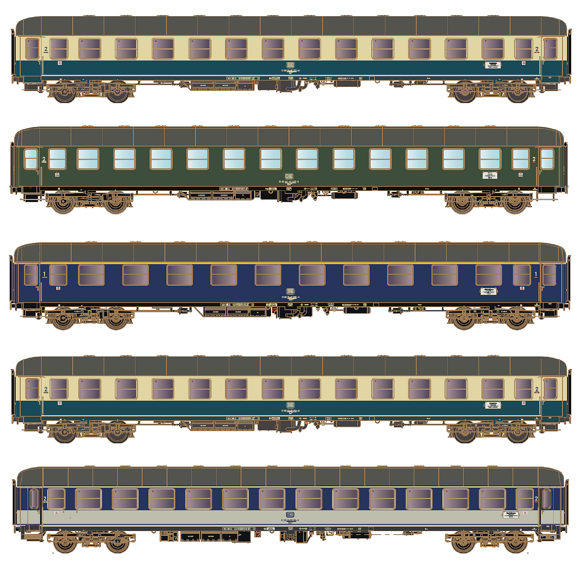 -bestehend aus: 2x Büm232 (ozeanblau/beige), Büm232 (grün), Büm232 (Popfarben blau), Am202 (blau)
